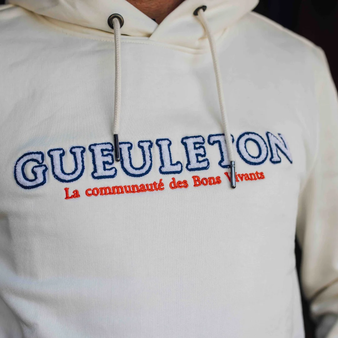 Ce sweat Gueuleton blanc avec contour de logo bleu est parfait pour ceux qui recherchent un look décontracté mais raffiné. Que ce soit pour une sortie entre amis ou une journée de détente, ce sweat vous assure confort et style en toute occasion.